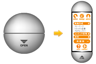 コントロールパネルには大きく「editor モード」「designモード」「adminモード」の3種類のメニューがあり、さらにログイン中のアカウントの権限や、ご利用の拡張モジュールによって表示されるメニュー項目数が変動します。