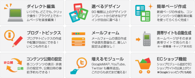 「BenHouseCMS」には、現在下記のモジュールが用意されています。